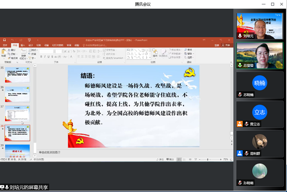 院长苏莹莹教授主持,两学院全体教师在线参加。