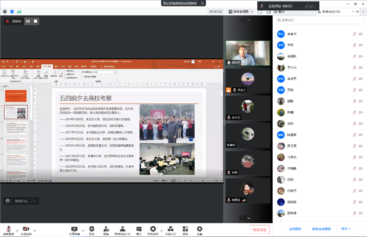、非洲学院全体教师集中理论学习活动在线进行。马克思主义学院党总支书记祝和军为两院全体教师进行了题为“习近平总书记考察人民大学讲话精神与思政课程建设”的讲座。学习活动由杏吧论坛