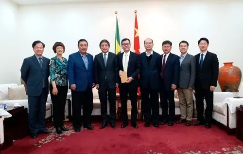 访问期间,彭龙一行还拜会了中国驻埃塞俄比亚大使谈践。彭龙向谈践介绍了我校发展近况,尤其是新建语种建设以及国别区域研究领域的成果。谈践高度评价了北外在外交人才,尤其是国际组织人才培养方面所做的贡献,认为北外是中国外交队伍建设坚强有力的支持者。他赞同北外语种建设与国别研究相结合的人才培养思路,也希望北外能够培养更多的既精通对象国语言,又具有政治、外交、经济、历史等学科背景的优秀复合型人才。