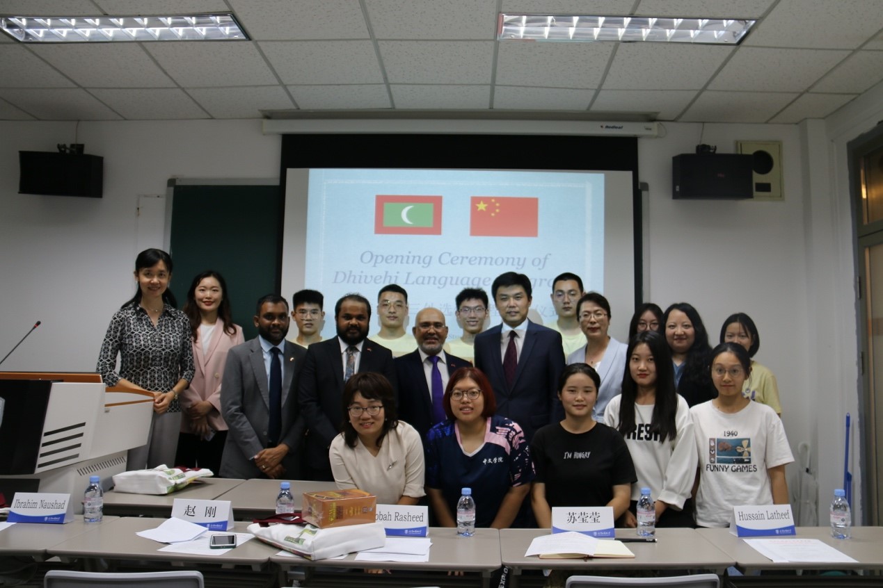 建院60周年,迪维希语课程的开设显得格外有意义。学校非常重视迪维希语专业建设,选派优秀师资人选赴马尔代夫学习迪维希语。在马尔代夫驻华使馆的关心下,在大家的共同努力下,喜迎迪维希语的开设。迪维希语是马尔代夫的唯一官方语言,承载马尔代夫悠久的历史和独特灿烂的文化。迪维希语课程的开设可以帮助中国的青年一代深入了解马尔代夫历史文化,促进两国的教育文化交流。