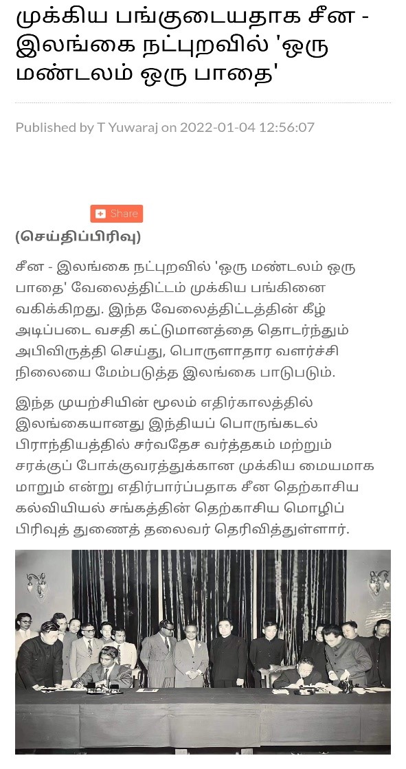 对于中斯友谊而言,“一带一路”倡议的提出带来了重要契机。所有关注中斯关系发展的人都在期待着斯里兰卡在“一带一路”倡议框架下继续发展基础设施建设,提高经济发展水平,在不久的将来成为印度洋地区国际贸易和物流业的重要门户。所有对中斯友谊满怀期待的人都相信,中国和斯里兰卡会继续携手,在抗疫、经济合作和文化交流等不同领域继续谱写新的时代篇章。