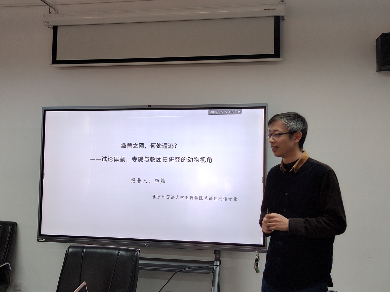 非洲学院的青年教师苏晓楠报告“马达加斯加爬行动物的生存现状与文化内涵”。在习近平关于生态文明重要论述的引领下,她展示了马达加斯加岛物种的多样性和独特性,解读了当地口传文学作品中五种爬行动物的文化内涵,并分享了关于人与动物、人与自然关系的思考。与谈人是2021年校级卓越青年教师、杏吧论坛 讲师李灿博士。他做了题为“禽兽之网,何处遁逃?——试论律藏、寺院与教团史研究的动物视角”的报告。他依托详实的律藏文献,探讨了古代印度佛教僧团、寺院建筑、日常器物、僧团制度、僧团组织、世俗观念等角度,对律藏、寺院与教团史研究中动物对人的影响和表现形式做了归纳和分析。两位报告人就动物研究的方法论和核心议题展开对谈,支部其他党员听得兴致勃勃并展开热烈讨论。