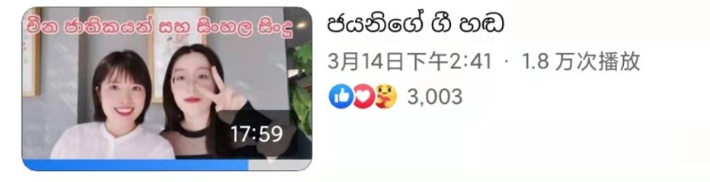 3月14日的直播节目由中央广播电视总台亚非中心僧伽罗语部主播、北外僧伽罗语专业2004届校友刘晖主持。斯里兰卡观众通过“脸书”平台与2018级僧伽罗语专业的丁敏行同学一起参与了一次特别的“演唱会”,氛围轻松愉快。直播环节中,丁敏行同学在直播镜头前与斯里兰卡观众热情互动,演唱了斯里兰卡著名流行歌曲《manike mage hithe》,并介绍分享了自己的僧伽罗语和中文歌单。其优美的歌喉和流利的口语获得了海外网友的纷纷点赞。