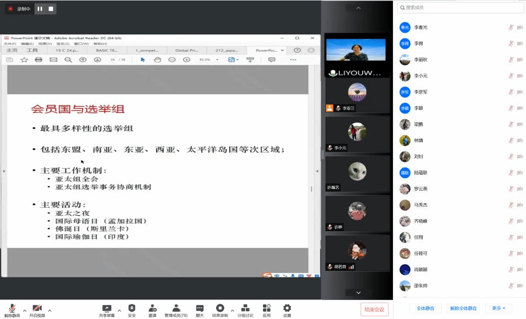非洲学院党总支书记许晔对学习活动进行了总结,他表示李又文老师的讲座不仅让我们深入了解了联合国教科文组织的架构、工作机制,丰富了我们关于全球治理概念、亚太及非洲区域在全球治理中的优先事项等方面的重要知识,也引发了我们对培养什么样的外语人才以更好地适应国家参与全球治理事务的需求等诸多方面的思考,他鼓励老师们将理论学习与自己的实际科研、教学工作紧密结合,思考如何将理论所得应用于对实际工作的指导中,以克服学做两张皮现象,提高全体教师集中理论学习活动的效能。