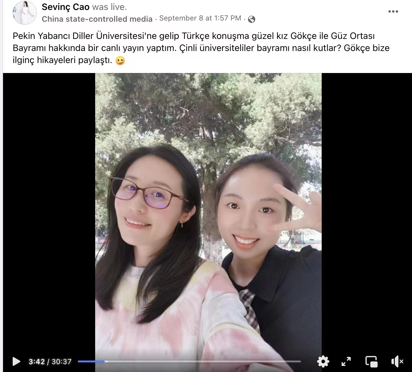 2022年9月8日,我院土耳其语专业学生与中央广播电视总台土耳其语部网红主播共同主持《大学生的别样“中秋”》直播节目。此前,由我院20级土耳其语专业4位同学参与的大创项目“用土耳其语讲述中国故事”系列故事之中秋节相关视频已提前在中广电总台宣传平台上播出。节目播出后,收获海外观众极大关注。