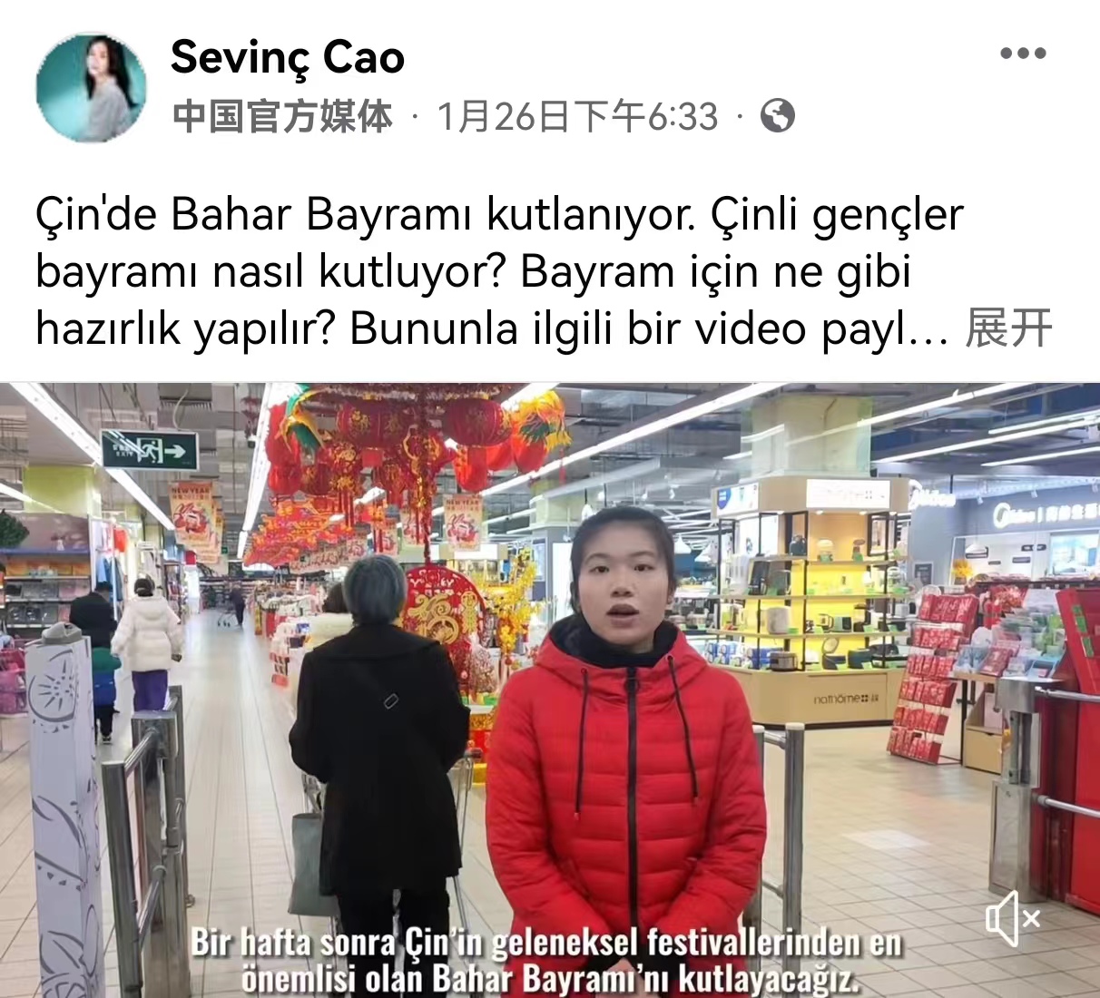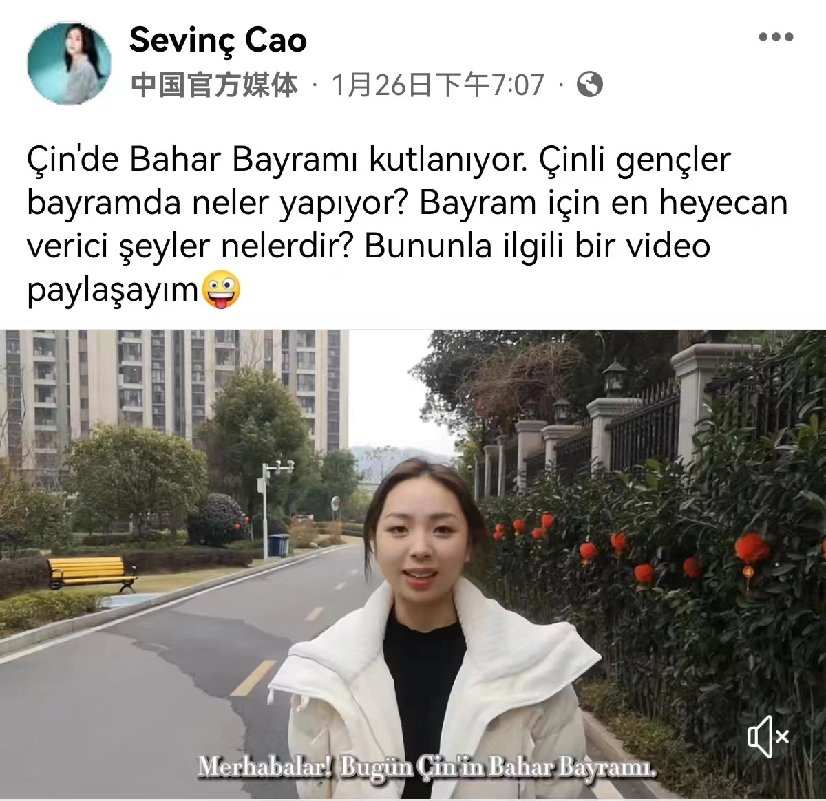 2022年1月26日,我院20级土耳其语专业4位同学参与的大创项目“用土耳其语讲述中国故事”系列故事之中国春节相关视频在中央广播电视总台宣传平台上播出。视频播出后,收获海外观众极大关注,两集节目累计覆盖量达166.5万。