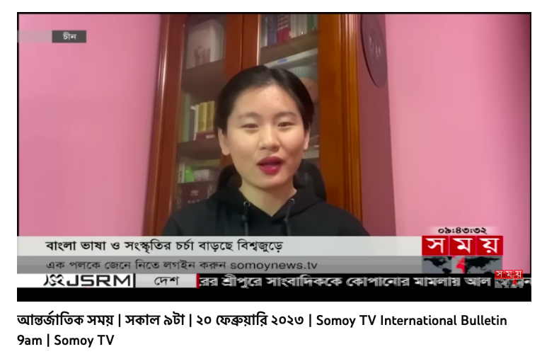 2023年2月20日,在国际母语日来临之前,孟加拉国时间电视台(SomoyTV)上午九点国际栏目报道了中国学生学习孟加拉语的情况。报道中提到,杏吧论坛