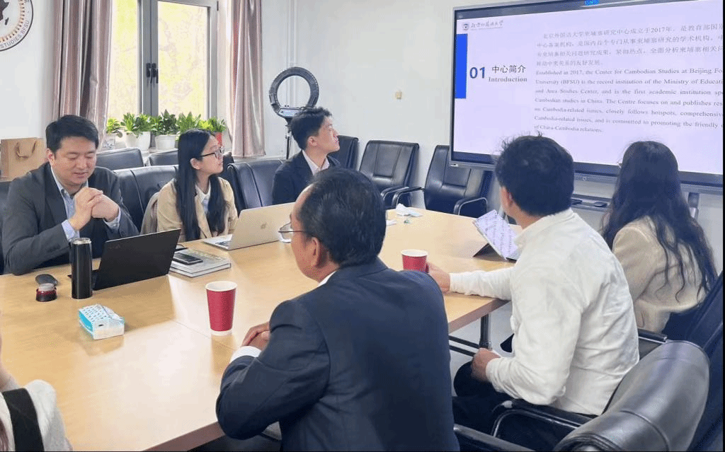 柬埔寨研究中心。柬埔寨研究中心主任顾佳赟、柬埔寨语专业教师李子茉,以及2019级柬埔寨语专业学生代表参与交流。
