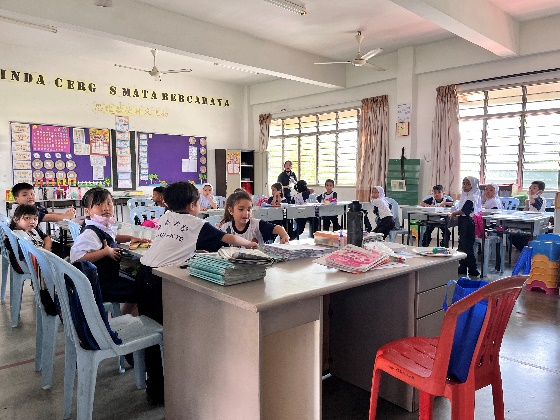 在益智国民型华文小学,沈劲杰校长向我们介绍了小学的授课方式和语言选择,由于其多元化的历史背景,华文小学一方面重视华文教育,校园内的板报、诗词名录营造了浓厚的文化氛围;另一方面又重视与国际接轨,融入马来西亚多语言、多民族、多元文化的大家庭中。目前该学校七成以上的学生为马来人。