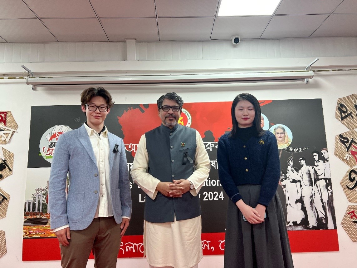 活动中,研究生李源毓和本科生崔洛宾现场朗诵了孟加拉语诗歌《二月之歌》,并演唱了中文歌曲。本科生张千扬、赵澜清、顾韧龙和陈星桥录制了祝福歌曲《他们想了解我们所说的语言》于现场播放。这些节目均获得了与会来宾的高度赞扬与热烈反响。