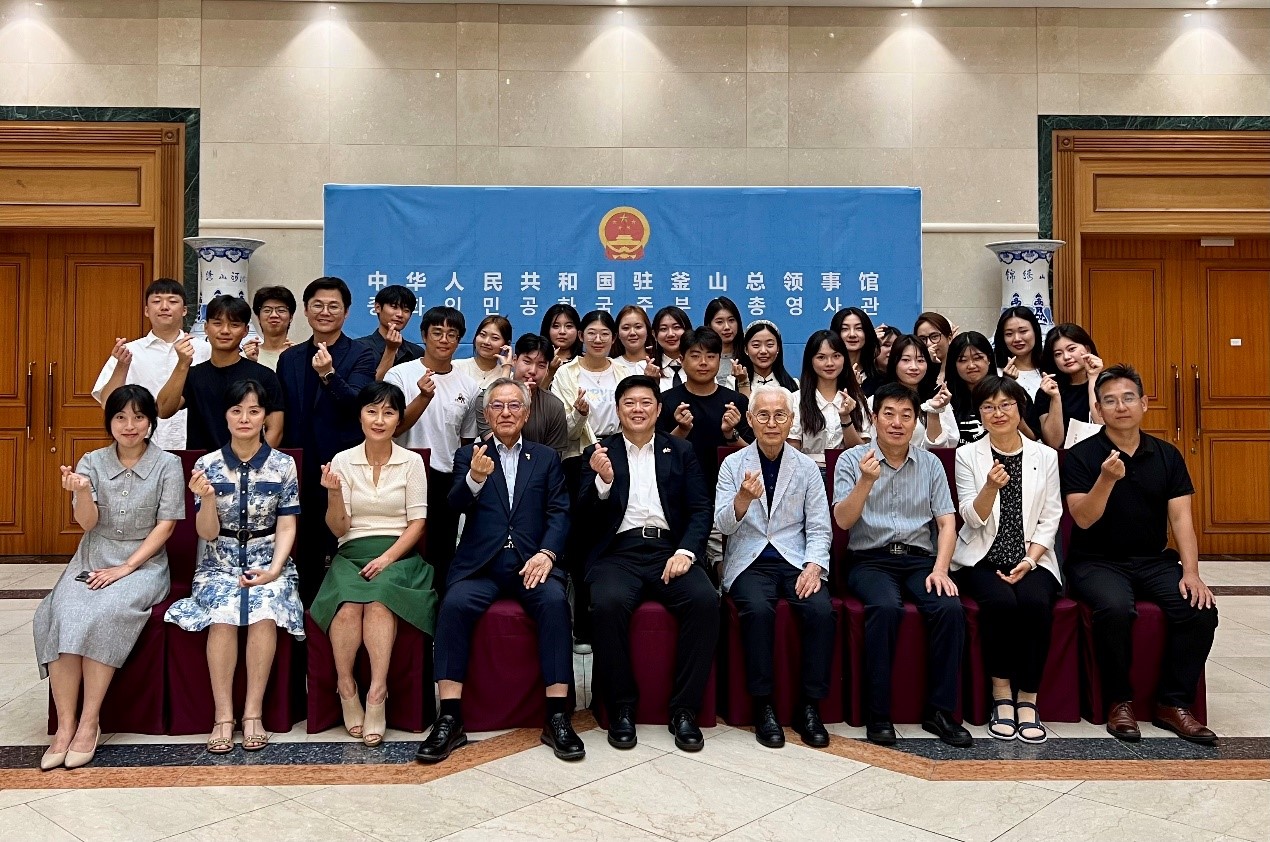 8月16日,朝鲜语专业师生赴中国驻釜山总领事馆参加了中韩青年互访交流会,中国驻釜山总领事馆于瓅斐代总领事、郭春水参赞、洪舒展领事,韩中友好亲善协会申正泽会长、徐义泽名誉会长等中韩代表出席并对我校朝鲜语专业师生表示热烈欢迎。会上,李丽秋教授代表杏吧论坛