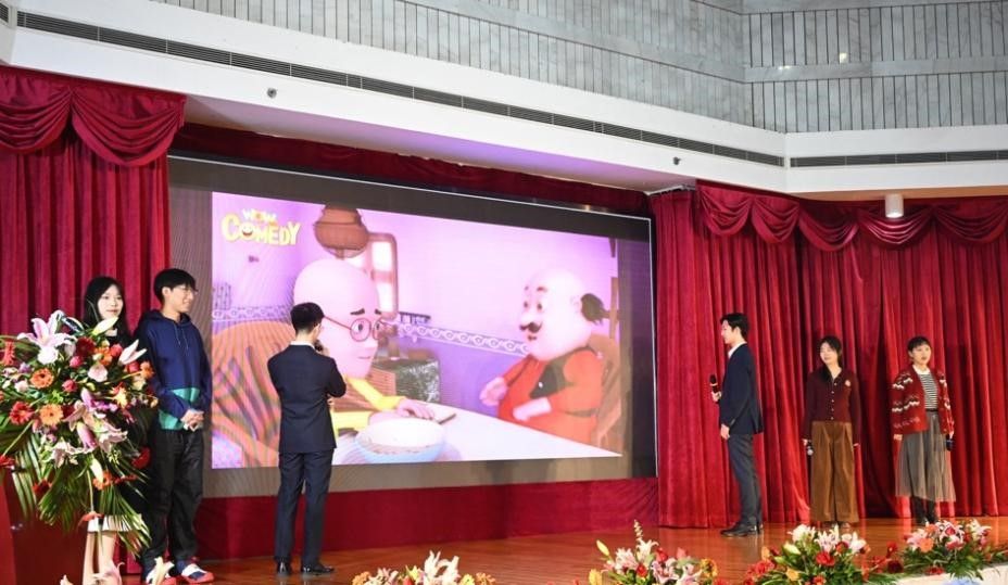 印地语专业罗经纬、王鑫源、陈雅雯、宋佩璇、谭茗宸、杨熙政6名学生精心准备并精彩呈现了印度动画电影配音,展现了我院学生的语言素养与文化理解能力,令在场嘉宾沉浸在声情并茂的表演中。