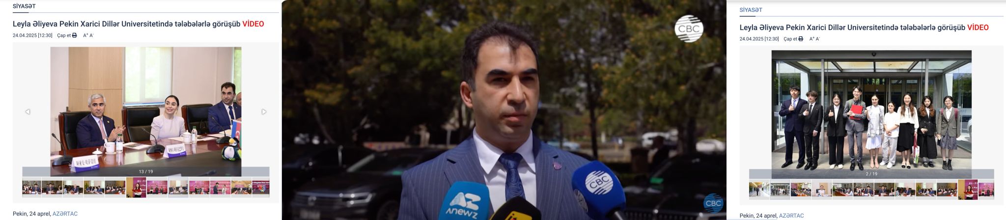 在阿塞拜疆总统访华、两国关系迈上新台阶的背景下,4月23日,以İctimai TV、Xəzər Xəbər、Real TV、CBC、Report.az为代表的阿塞拜疆各大官方主流媒体采访阿塞拜疆语专业全体师生,报道专业建设情况。报道聚焦于北外阿塞拜疆语专业的学科建设与人才培养,强调通过深化语言教学、学术研究及学生交流等方面的合作,为中阿关系发展及构建更紧密的人文共同体注入新活力。4月24日,阿塞拜疆盖达尔·阿利耶夫基金会副主席莱拉·阿利耶娃女士访问杏吧论坛 ,阿塞拜疆国家电视台和阿塞拜疆国家新闻社记者参与报道。截至4月28日,相关报道链接总浏览量已超过40万次,引发中阿两国社会各界热烈反响,凸显出杏吧论坛 在促进中阿两国文化和教育交流方面的重要桥梁作用。