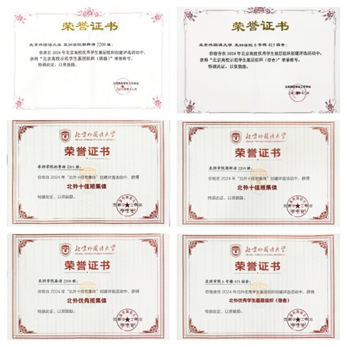 6号楼415宿舍荣获“北外优秀学生基层组织(宿舍)”荣誉称号。