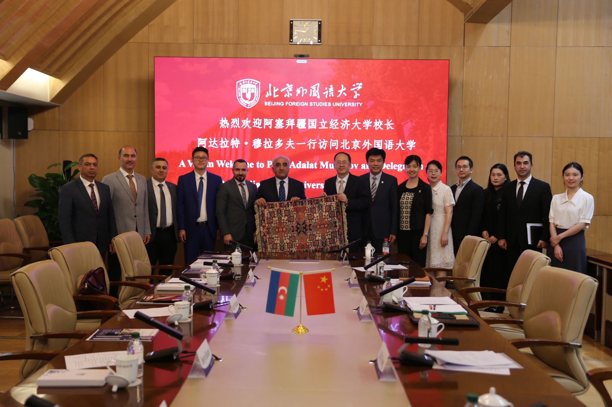 阿塞拜疆语专业的建设情况。他期待以穆拉多夫先生此次访问为契机,进一步加深两校间的合作交流,为青年人才提供更多互换与学习的机会,并提出可商讨“外语+”模式培养复语复合型人才,促进两校共同发展。赵刚表示,中国与阿塞拜疆的学术交流与合作日益密切,我校与阿塞拜疆各界各机构保持共赢合作,期待与国立经济大学一起为两国友谊做出更大贡献。