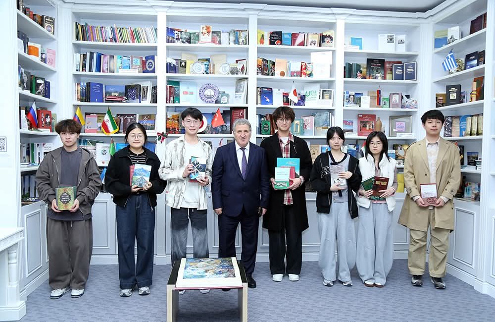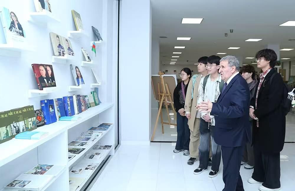 首先,伊萨·哈比卜拜利院士带领全体学生参观了阿塞拜疆国家科学院图书馆的主题展览。他向学生详细介绍了展出的作品及相关文化知识。