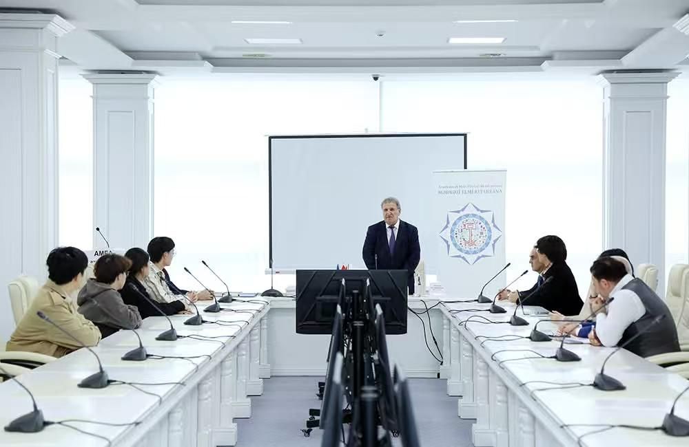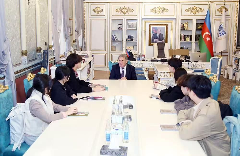 2025年12月2日,阿塞拜疆国家科学院院长伊萨·哈比卜拜利院士在阿塞拜疆国家科学院图书馆热情接见了我校阿塞拜疆语专业在阿公派留学的全体学生。阿塞拜疆国家科学院图书馆馆长胡赛因·胡赛诺夫参与会见。