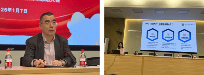 党总支书记许晔首先进行了2025年度党务工作总结。他从八项规定精神学习、支部建设、学院“十五五”规划制定等方面系统梳理了党总支年度工作成效。随后,罗云燕老师汇报了2025届就业工作总结,分析了目前学院就业工作亮点与不足。