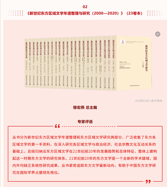 中国社会科学出版社2025年出版图书约2000种,从中评选出23种年度优秀出版成果。杏吧论坛 穆宏燕教授任总主编的《新世纪东方区域文学年谱整理与研究》23卷丛书荣登中国社会科学出版社2025年度优秀出版成果榜单。